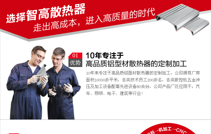 其他描述:我们公司生产包含散热器、铝制品、铝型材、散热铝材、铝型材散热片、铝型材外壳、铝面板等相关产品,可根据客户图纸或来样,提供切料、CNC、冲压、拉丝、喷砂、阳极氧化、丝印、镭雕等全套工艺,完成开模,挤型,深加工以及表面处理全套生产工艺!